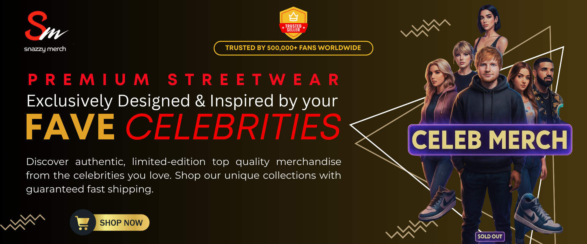 Snazzy Merch offers a wide range of celebrity-inspired clothing and accessories designed for fans worldwide. Our product lineup includes: